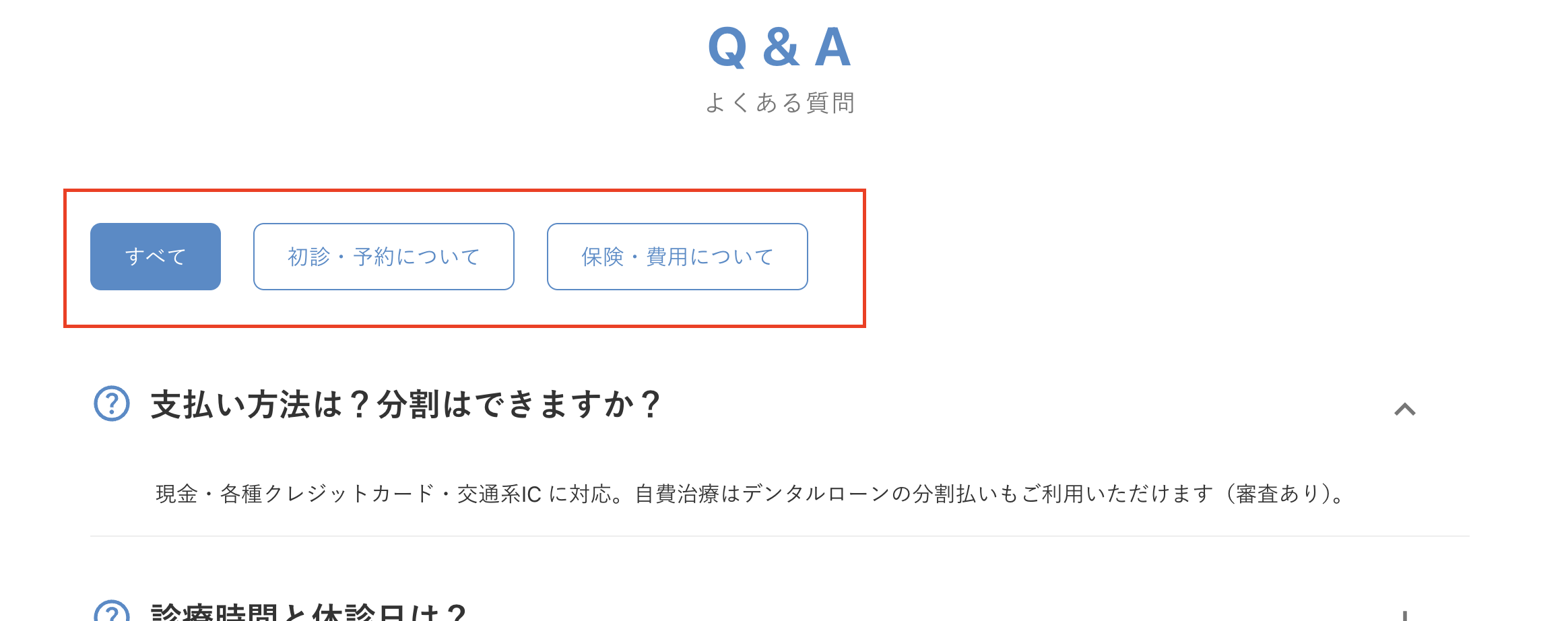 よくある質問は「カテゴリ」毎に表示されます。