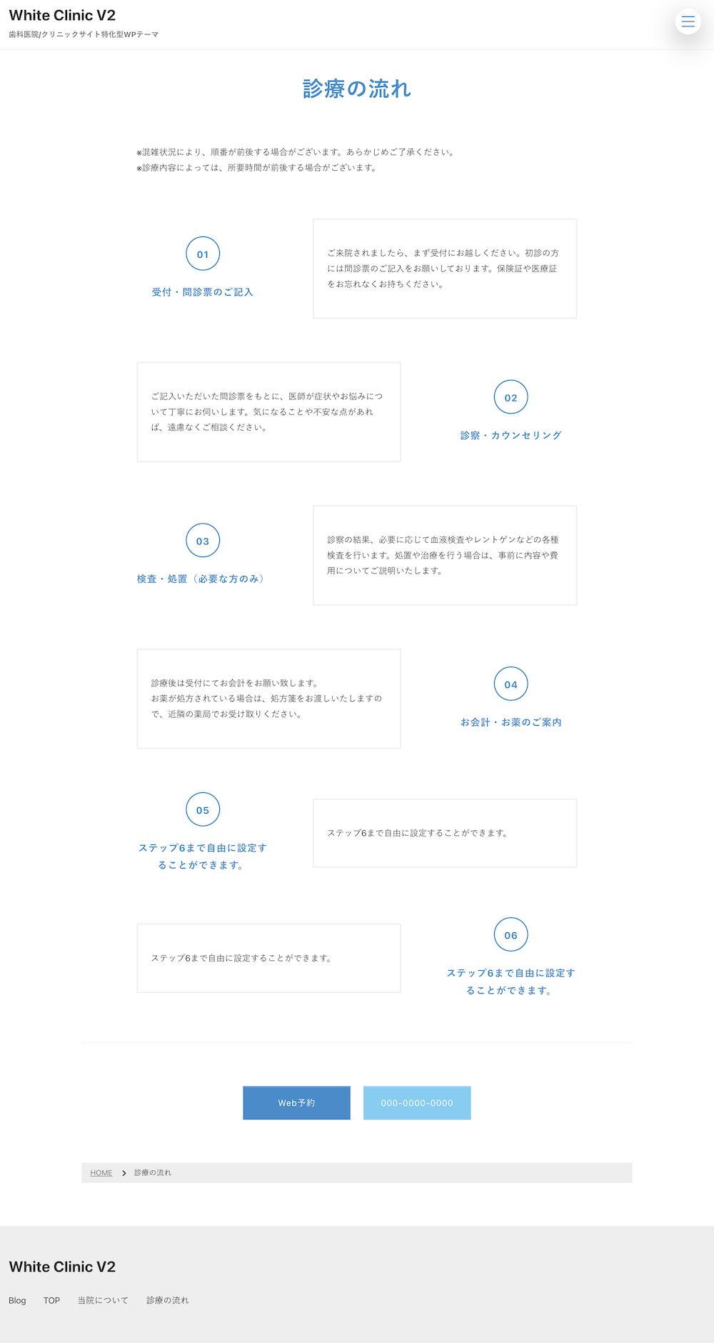 上記の手順により、以下のような診療の流れページを作成することができます。