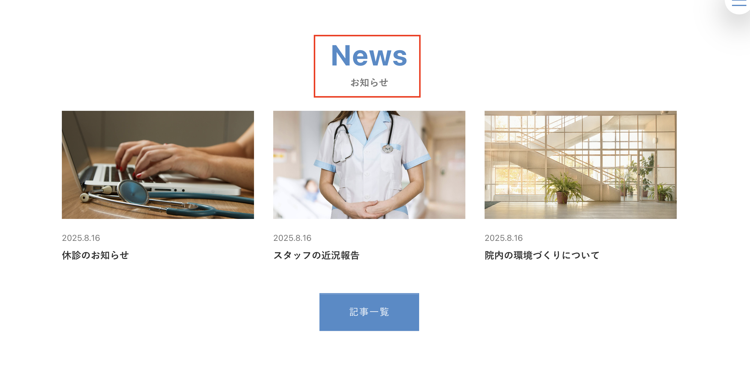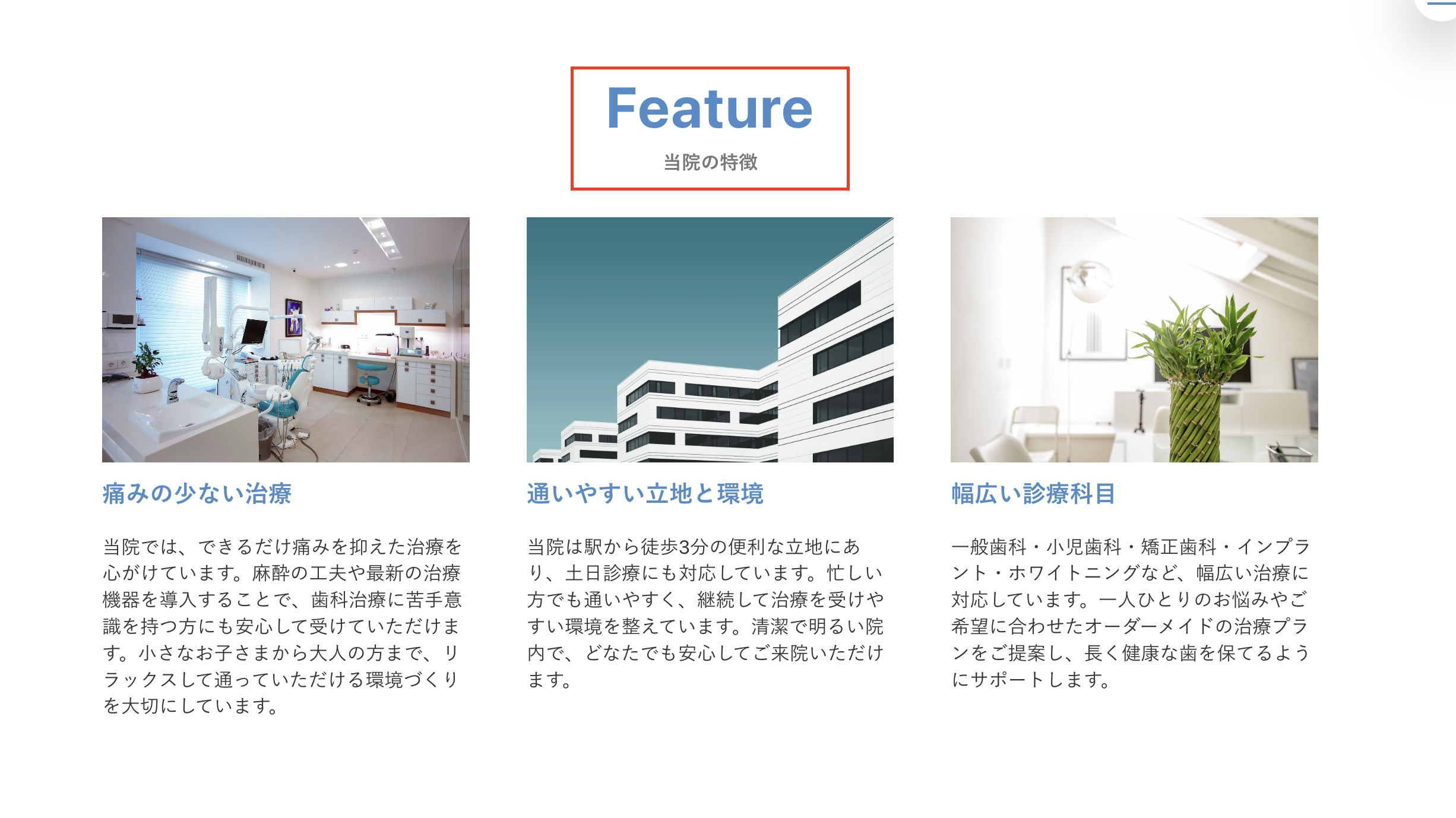 TOPページに表示する「特徴」欄の見出しを設定できます。