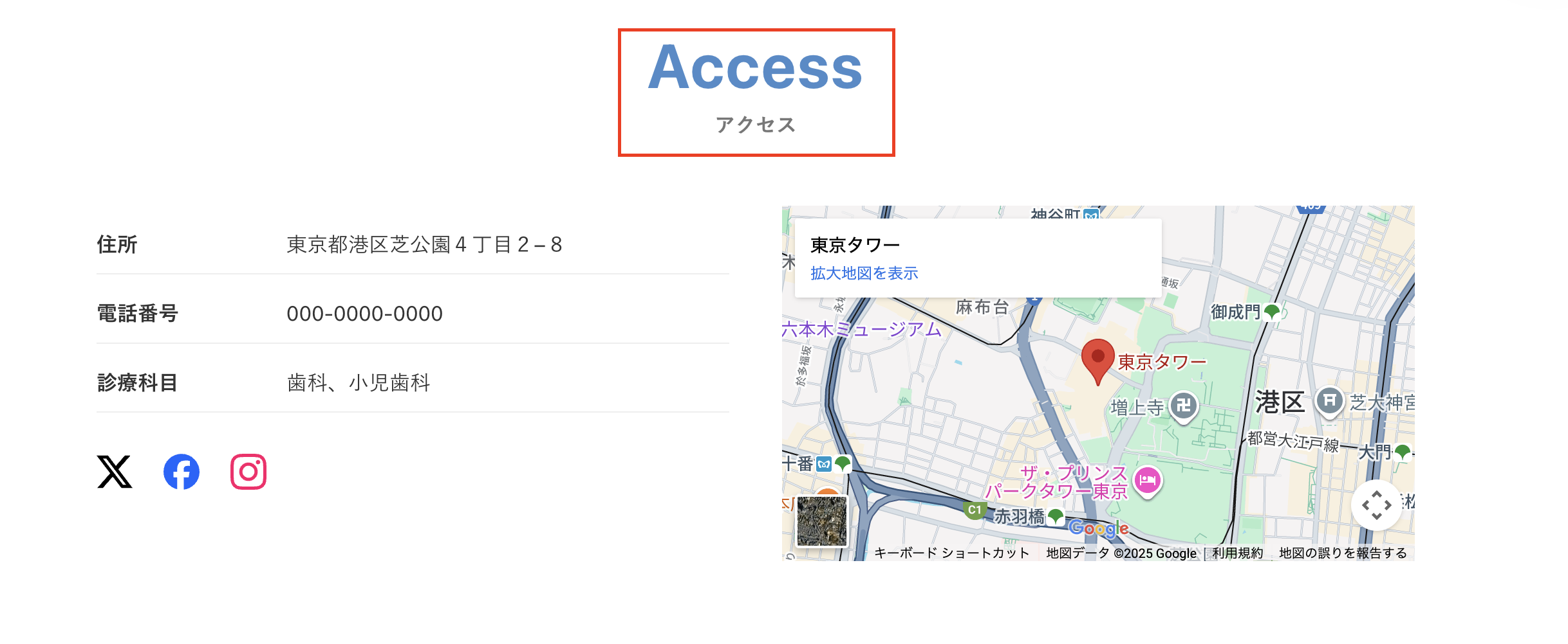 TOPページに表示する「アクセス」欄の見出しを設定できます。